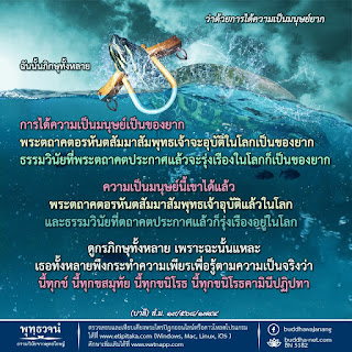 ในน้ำนั้นมีเต่าตัวหนึ่งตาบอด ล่วงไปร้อย ๆ ปี มันจะผุดขึ้นมาครั้งหนึ่ง ๆ.